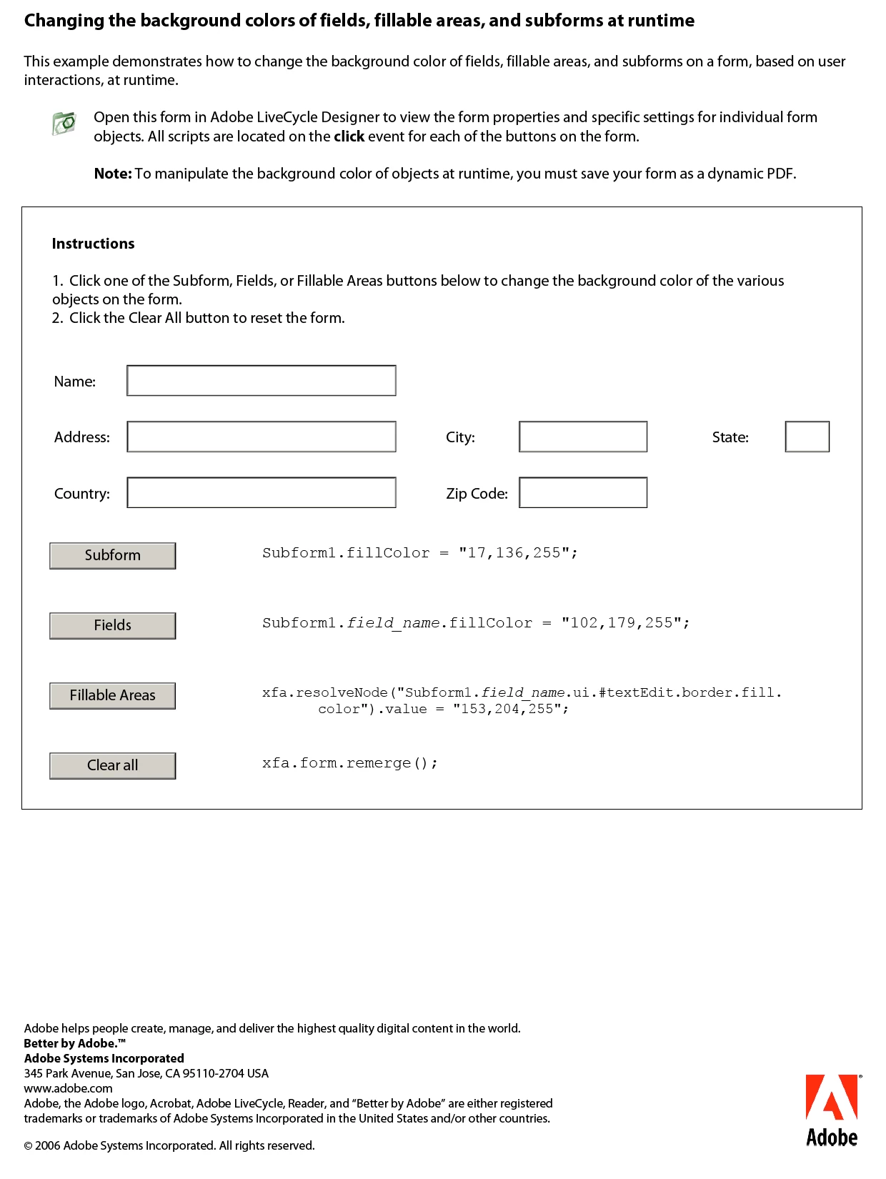Another very helpful resource was the collection of worked examples provided directly by Adobe (not the standard forms included in the EN/Samples/ folder). I have attached (an image) of one or two to remind other veterans of the original 'Better by Adobe' sample set..