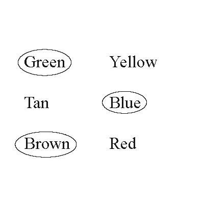 I'm sorry I don't quite know how to make my sample show up. On my form, I have a group of items lets say Blue, Yellow, Red, Brown, Tan etc. I want the user to simply circle or oval one or more of those items. The original form mine is based on did not have a check-mark, a bullet or an "X" by each item which should have made the selection easy and I cannot change the design at this stage. Well, I have the sample here but I don't know if it is going to show up.