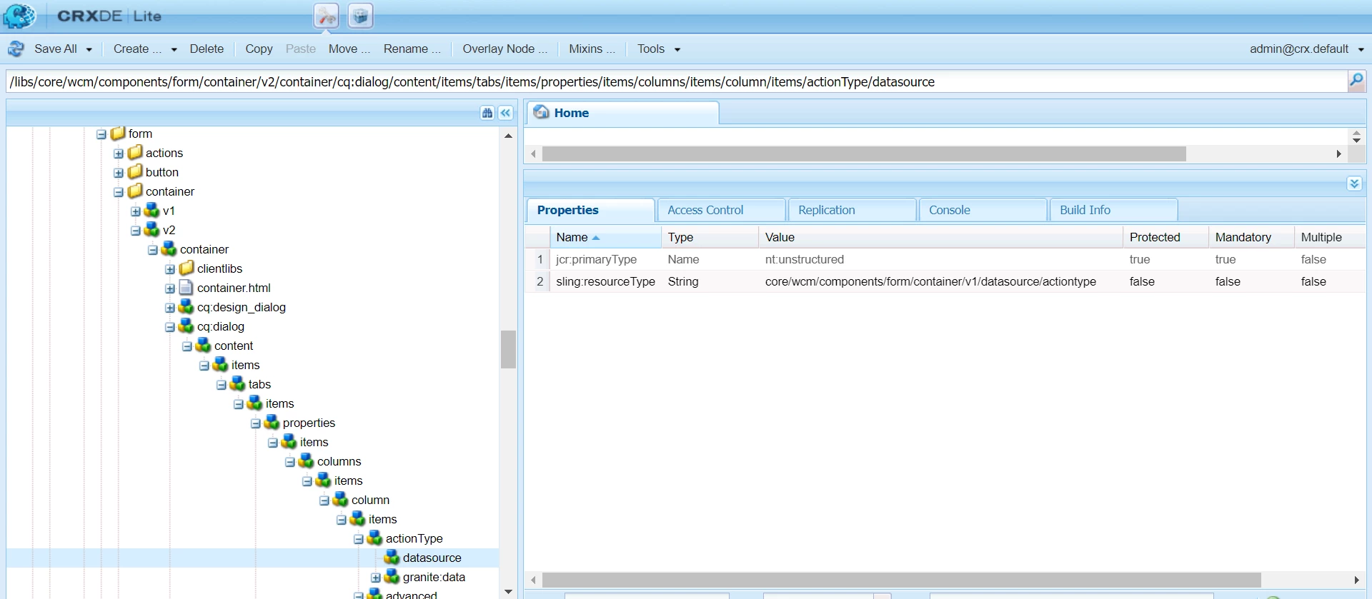 Core Form Container CQ Dialog Action Types Datasource