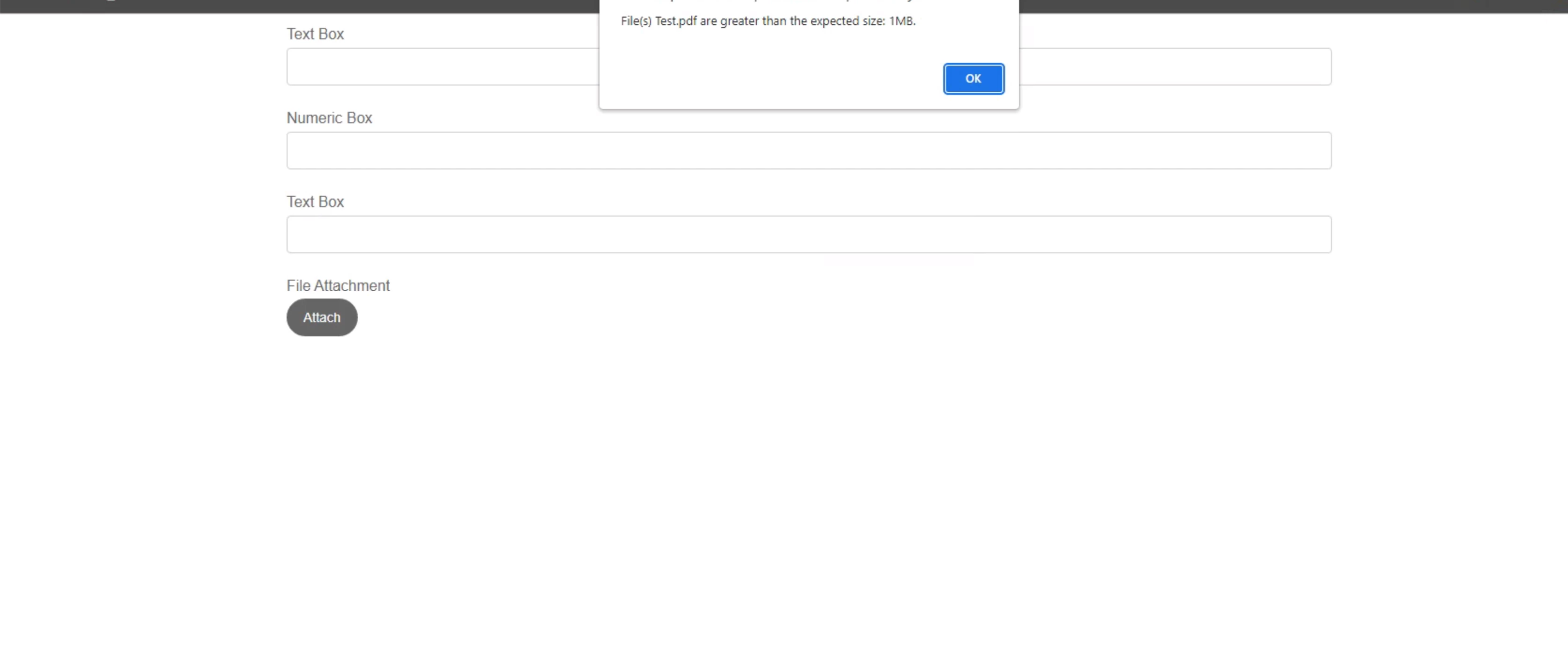 We are using File Attachment Component and have configured the maximum size of 1MB for an attachment.