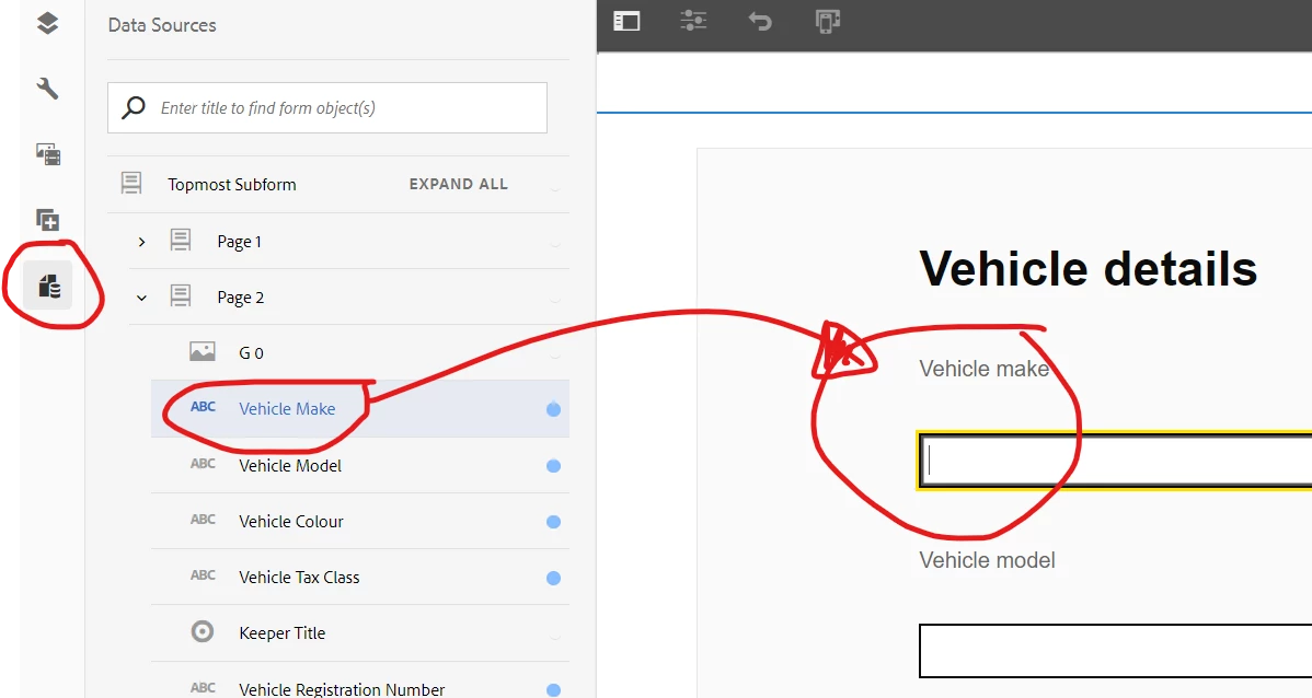 From the editor left hand panel (Data Sources selected) we would like to be able to drag an item onto the form and for the editor to insert one of our custom components rather than the standard set. For example rather than