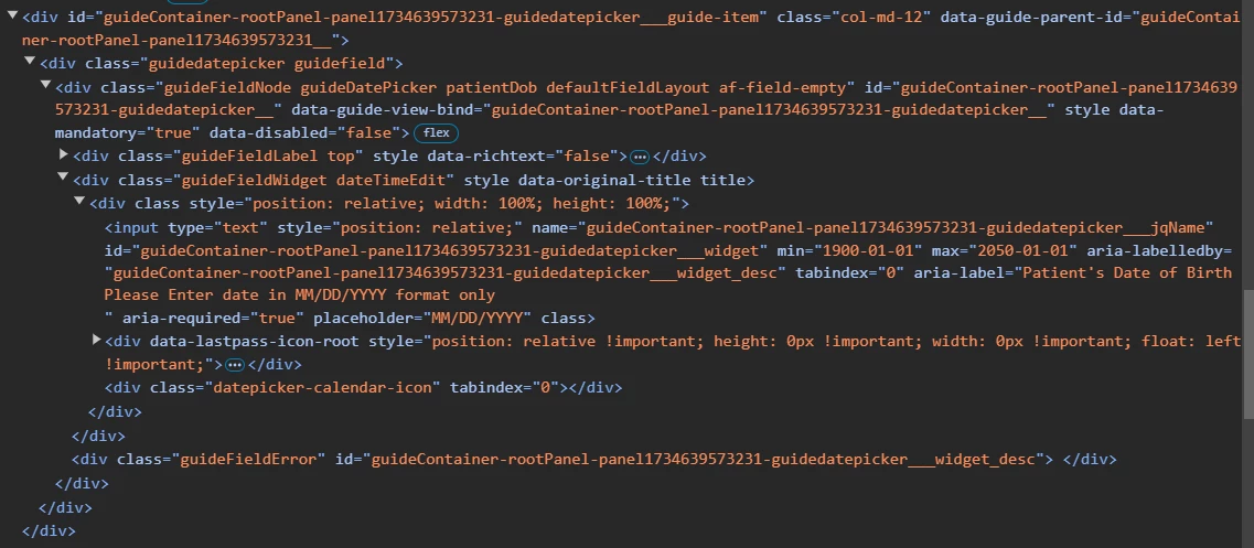 Date Picker field's calendar widget intermittently displays without any days (see image above). It works most of the time, but we haven't been able to come up with steps to reproduce the blank popup. We've seen the behavior on different Date Picker fields on different Adaptive Forms.