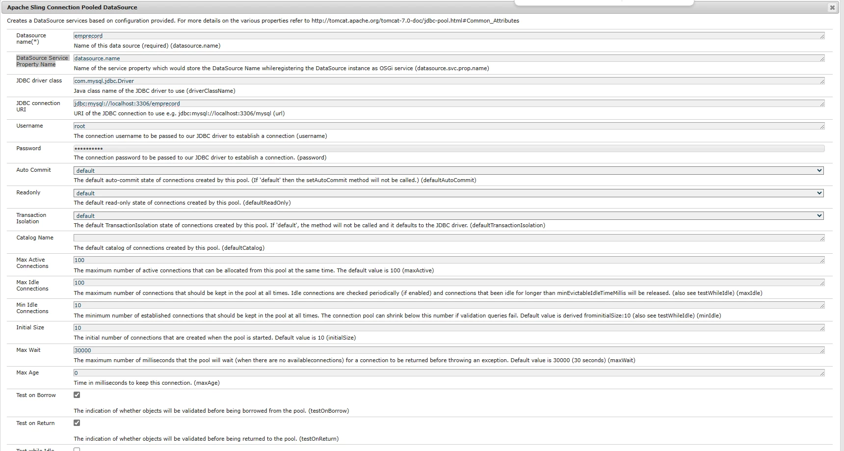 I tried to connect with Mysql using the configuration of "Apache Sling Connection Pooled DataSource" in AEM 6.5.