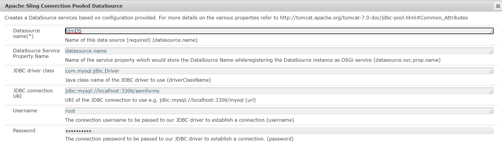 I am trying to create a FDM based on MySQL data base. I have installed the connector version - mysql-connector-java-8.0.24. AEM Forms version - 6.5. The Apache sling configuration is given below