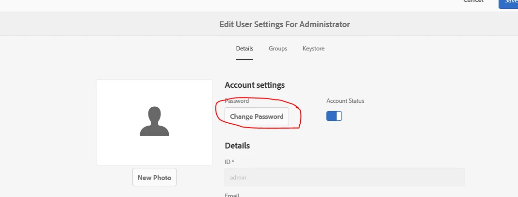 error when changing password on author