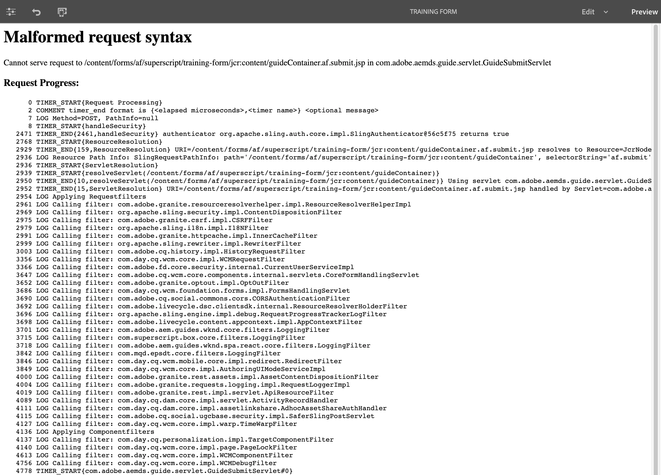 2022-04-01 17:50:04.104 DEBUG [com.adobe.aem.guides.wknd.spa.react.core.filters.LoggingFilter] request for /content/forms/af/superscript/training-form/jcr:content/guideContainer, with selector af.submit