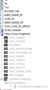 I doubt that all of the errors observed are users doing exactly what I did, but some are. And I believe that the underlying cause has to do with the submit buttons being available even though the form is not fully rendered. In prod, only errors are added to the log, but in Dev, I note that the filler fragment logs this warning: 11:25:57,004 WARN [com.adobe.document.XMLFormService] (p: default-threadpool; w: Idle) ALC-XTG-032-275: [8428] Error: AWS_CHOICE is undefined