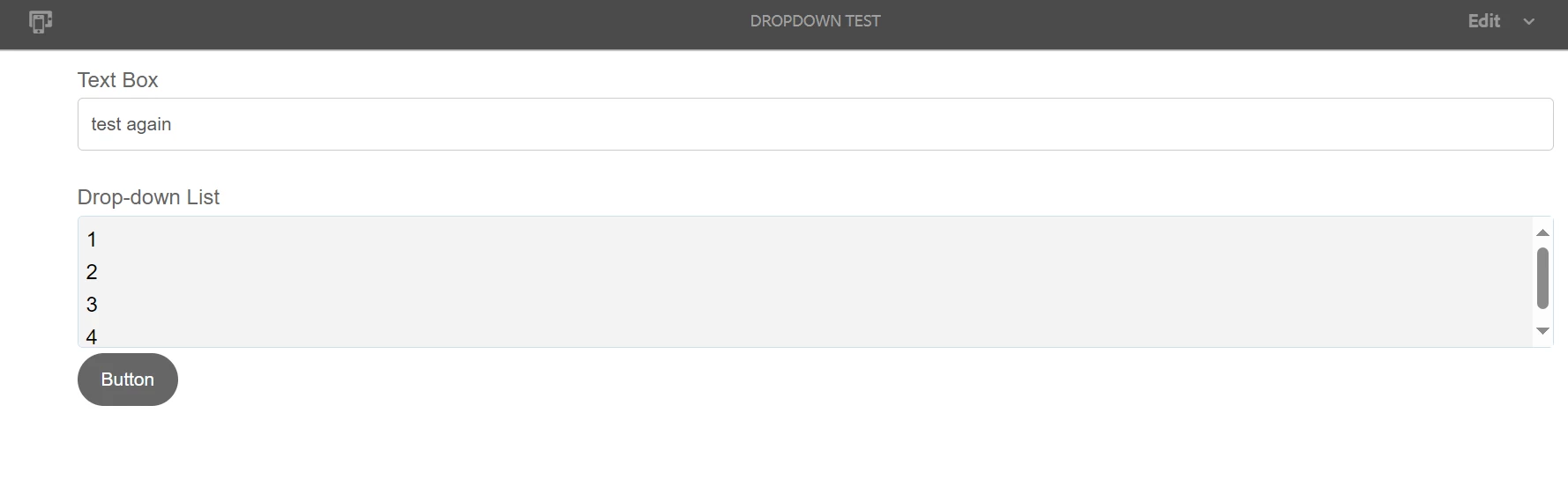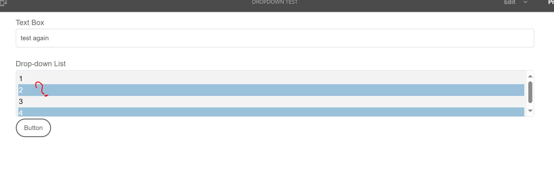 then i do it again i write "test again" and click the button, this clears the items from the dropdown list