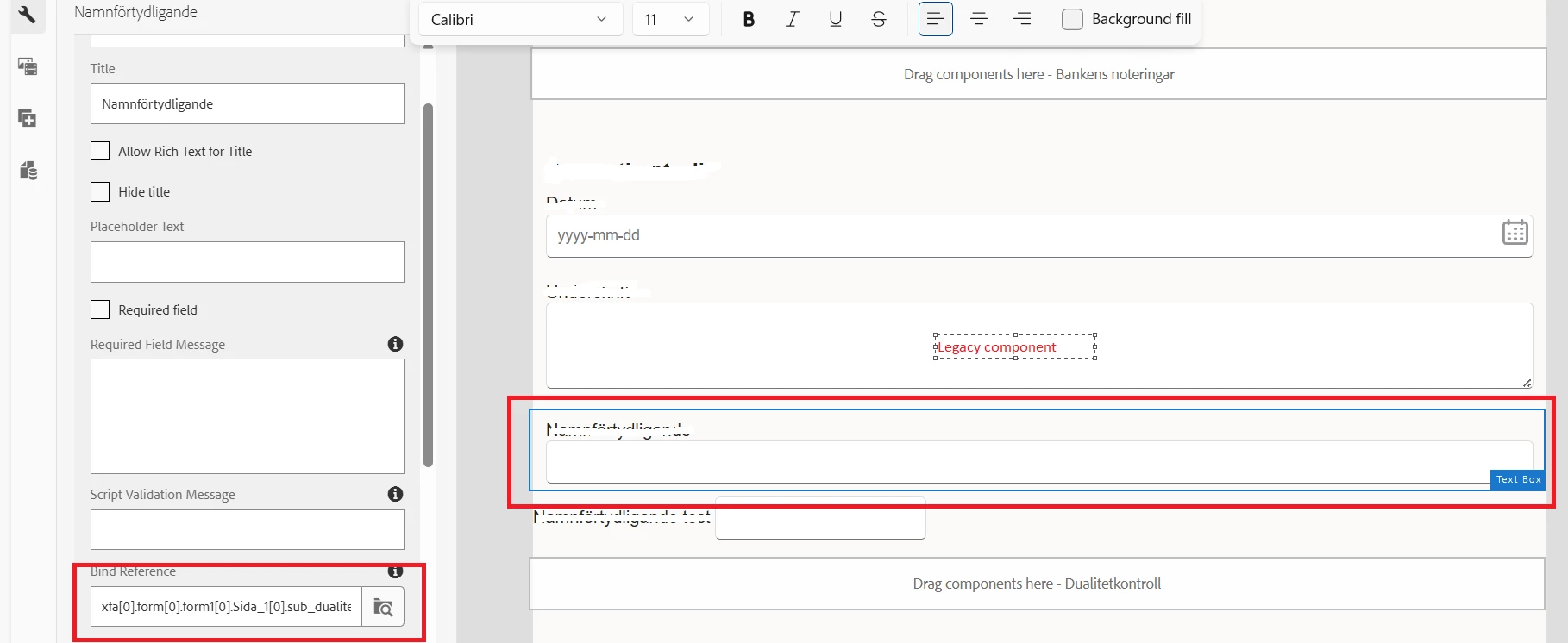 How to bind reference with XDP fields in adaptive form while using AF core component