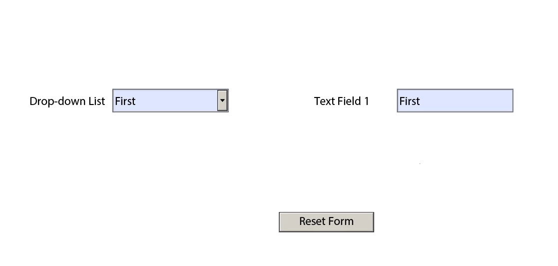 I've a "Reset" button that clears all data. However, even though the dropdown shows nothing after a reset, Textfield1/2 still on.