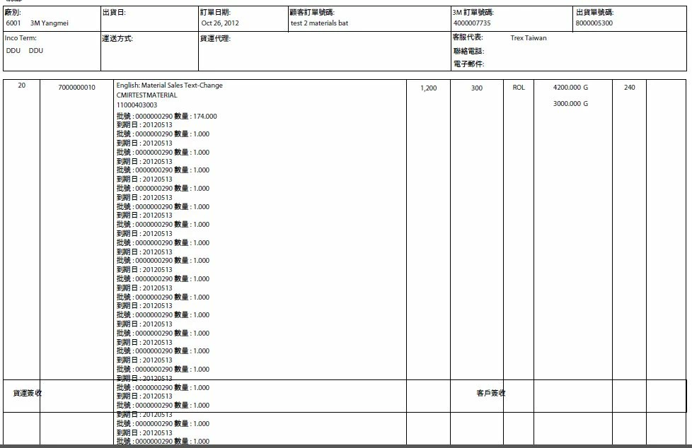 The line Item table at runtime is getting populated with 2 two rows. The first line item gets populated properly with page breaks and content overflow. The first line item contains around 200 lines in batch information field.