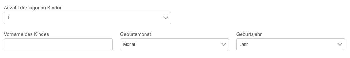 The first input is a dropdown with entries 1 to 10. The following three inputs are placed into a panel named "panel_child". If the user selects the count of his children, the panel should be displayed in the count, he selected.