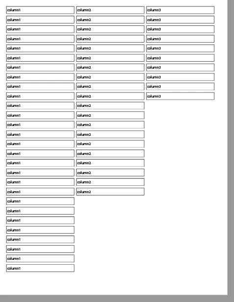 So here my question, what is it exactly that you want to do with these subforms, Is it a table? Are the rows linked between the subforms or is this just content that should spread over he three columns?
