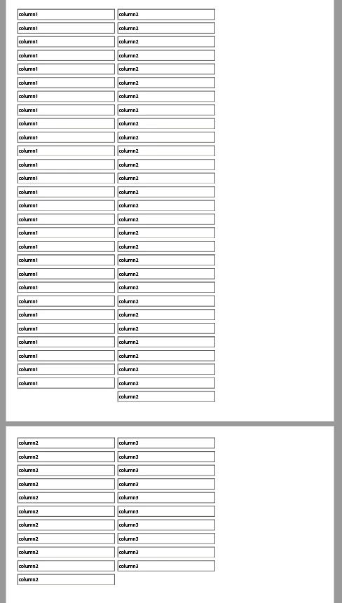 I have created a very basic form with this structure using a flowed main page and a flowed western subform with the repeating column rows. When there is no age break things look correct: