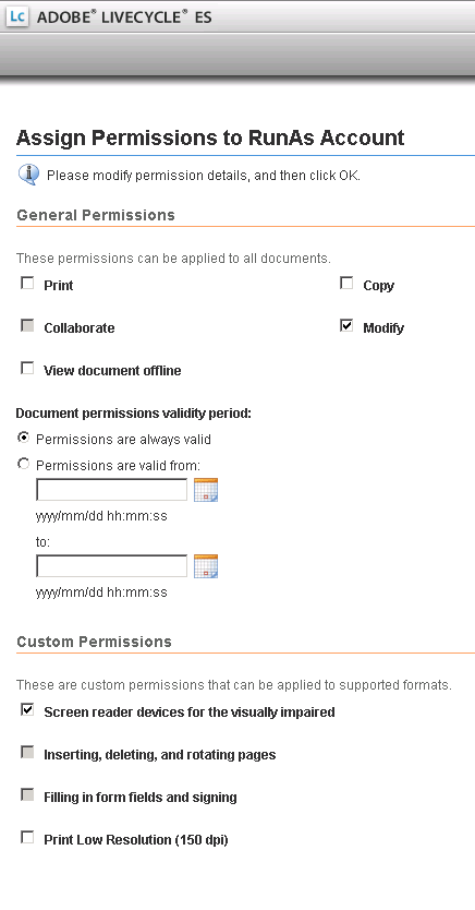 For example, If you wanted a "Certified" form to be filled in and signed by User A with Adobe Reader, you would need to: