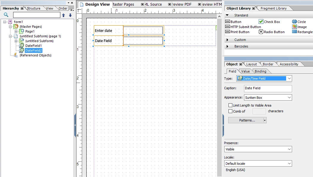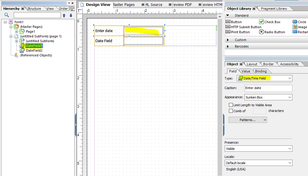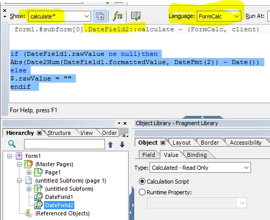 I have one date that is automatically populated with the current date, and another (earlier) date that the user enters. I need to have a field which calculates the difference between these 2 dates in days.