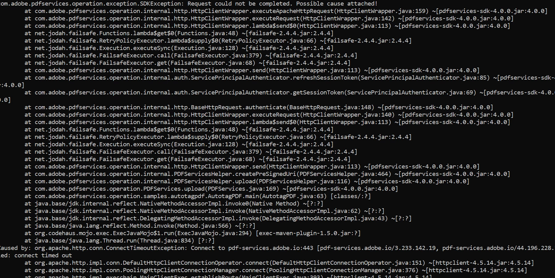 Unable to connect to pdf-services.adobe.io:443