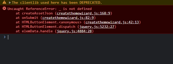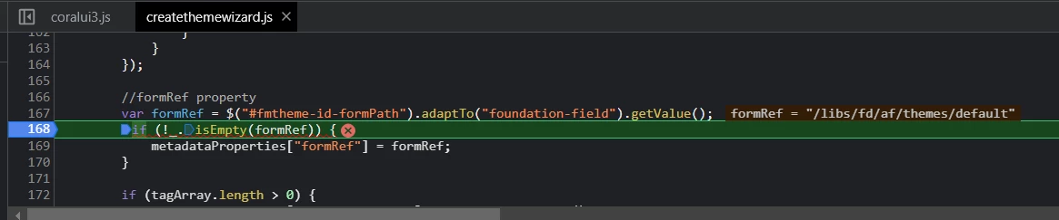 Issue - When trying to create a theme in AEM Forms, the createthemewizard.js is giving Reference Error.