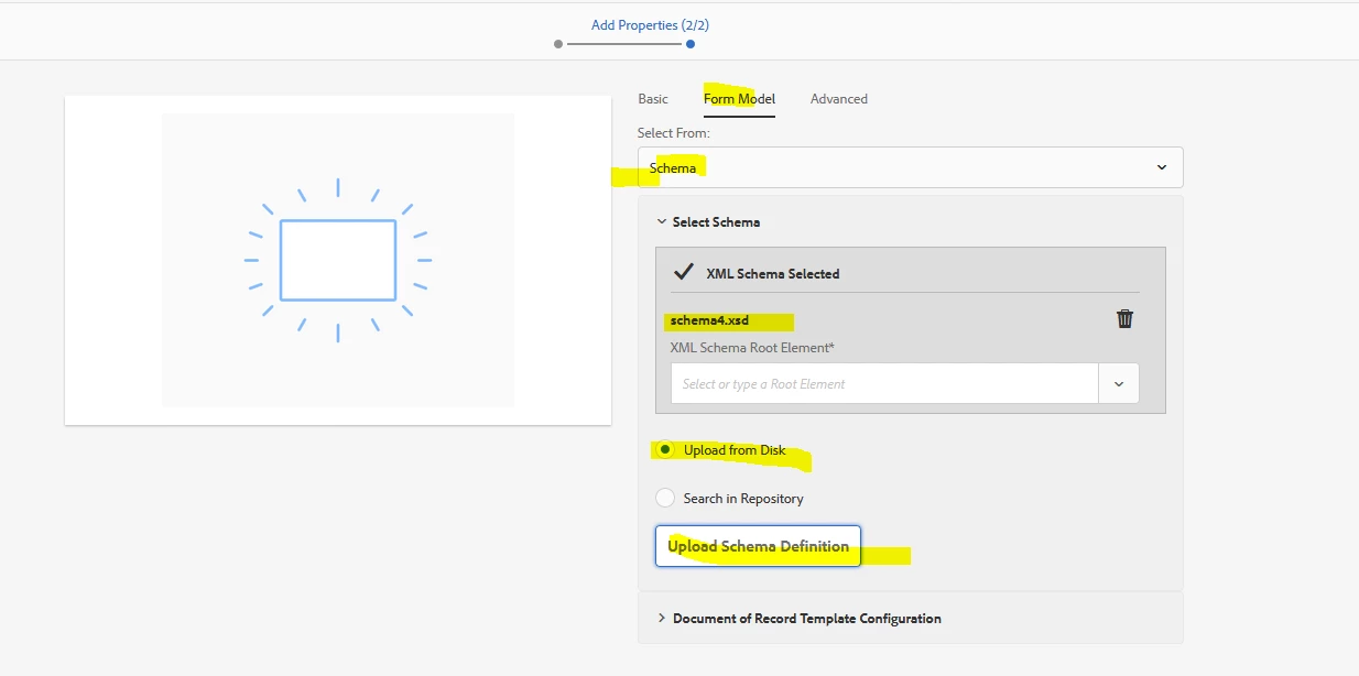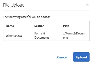 how do i upload an xsd schema into the repository so that i can use it as a form model for multiple adaptive forms?
