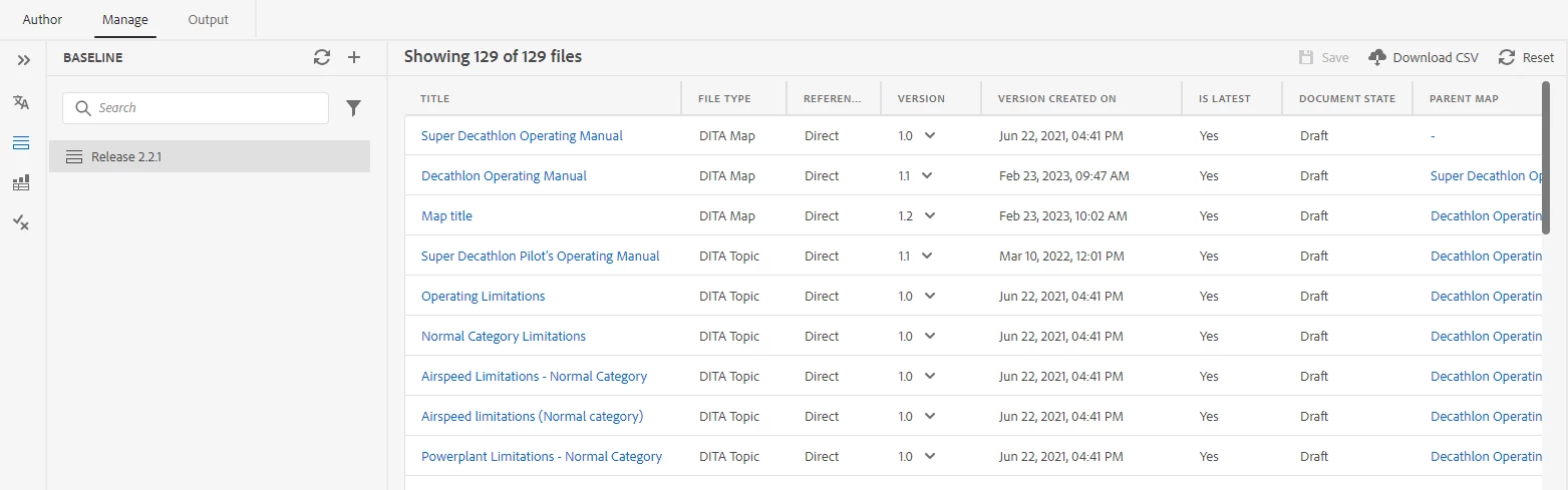 I'm aware that by opening an individual map or topic, I can view the version history to find this information. However, I'm looking for a way to generate a report or use a feature that consolidates this data without having to open each file individually. Is there an out-of-the-box solution for this in AEM?