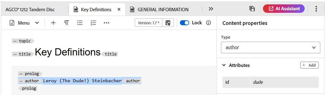 conkeyref behaviour in the Attributes panel for Prolog elements