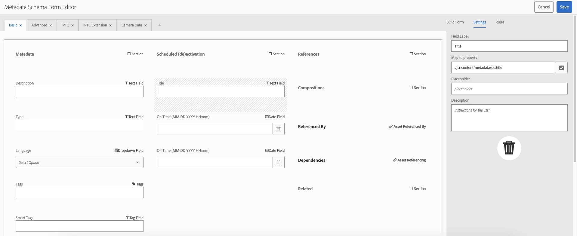 - Overlay this by creating the client library of category "dam.gui.coral.metadataeditor" which you can create by looking at properties of the directory "/libs/fmdita/clientlibs/clientlib-asset-properties-page" so you can create a similar client library folder under your project directory in /apps and use same clientlib category structure