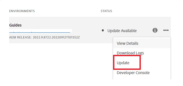 I want to updates AEM to 2022.6.7904.20220629T070041Z,from where,I can do this option, thx.