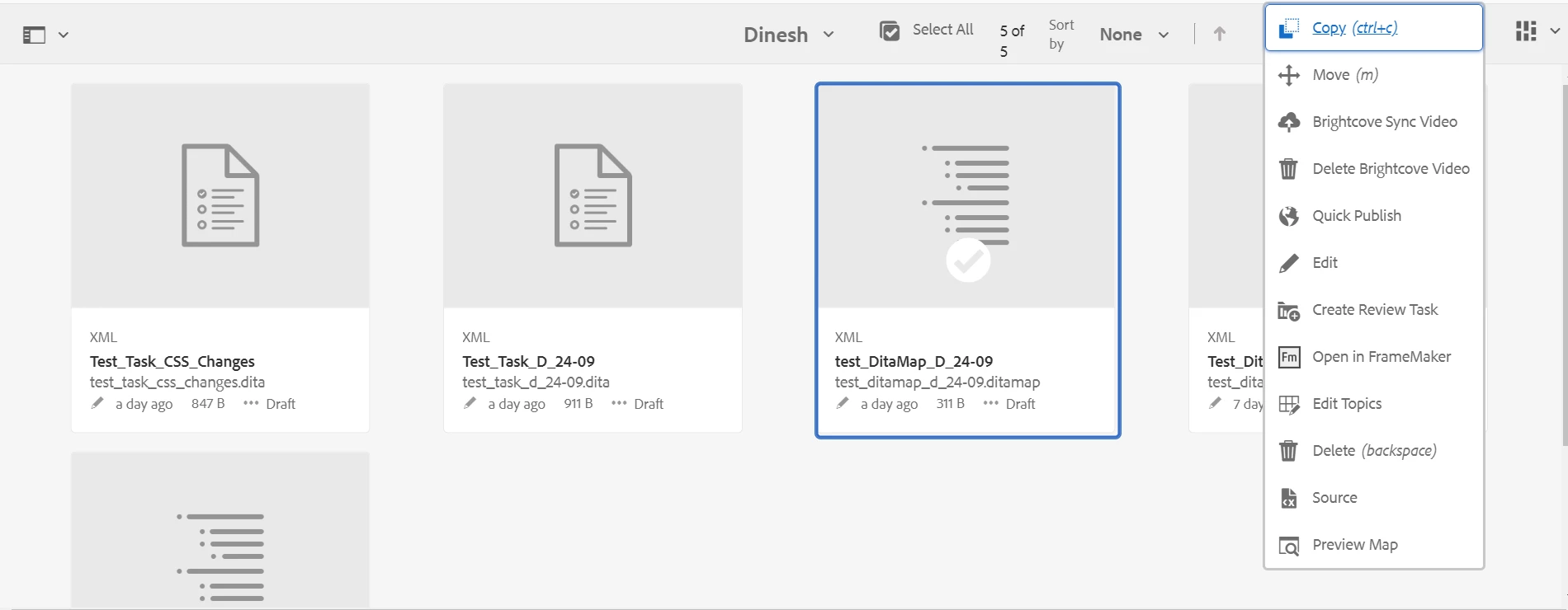 Open in FrameMaker" option exists when a a dita asset is checkmarked