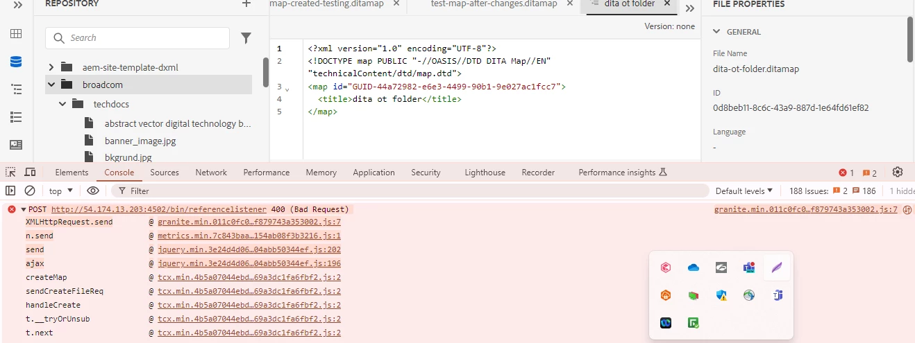 We have setup the AEM environment Guides. With this recently created environment we are unable to create an ditamap with the below error.