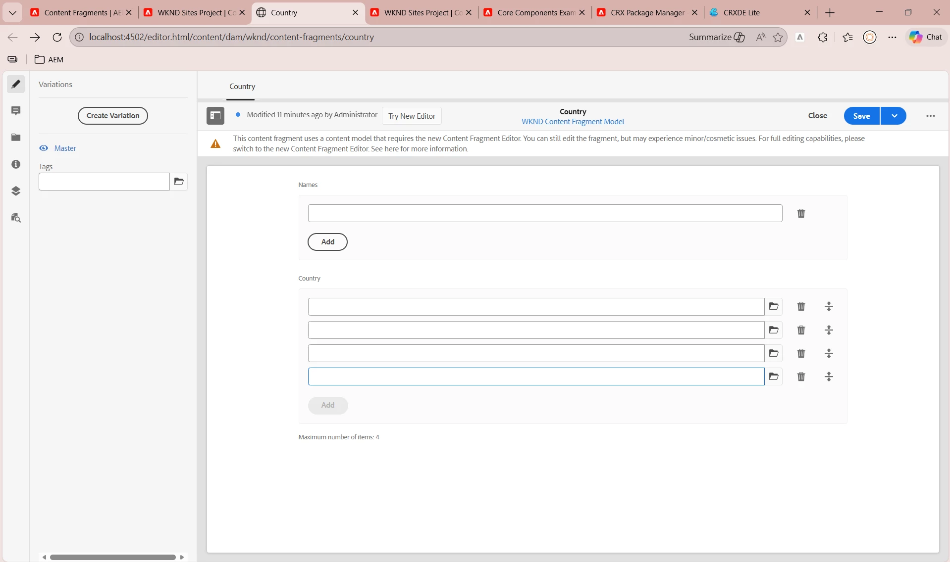 AEM 6.5 and AEM 6.5 Cloud – Min Number of Items in Content Fragment Model Not Enforced on Save (Old Editor)