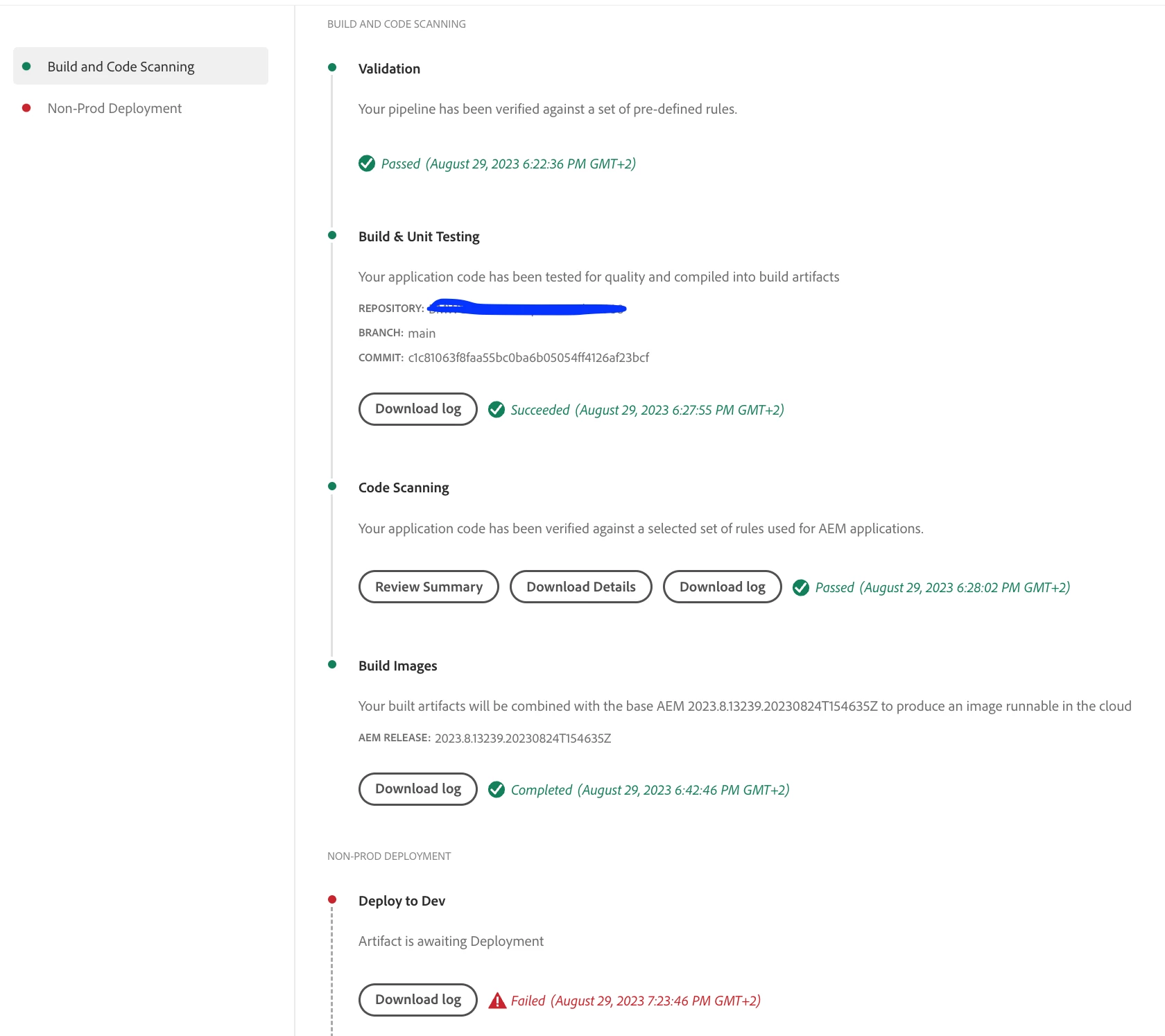 Update: I created a new pipeline for stage and prod deployment, they are also failing with the same error
