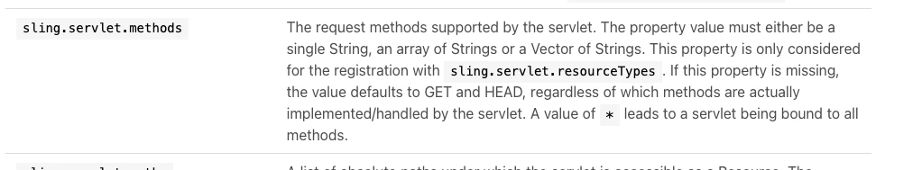 what is the default method for sling servlet if slig.servlet.methods is not set for Servlet in aem?
