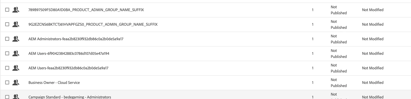 If I look at our dev author envs, login and open the groups page, I see the following: