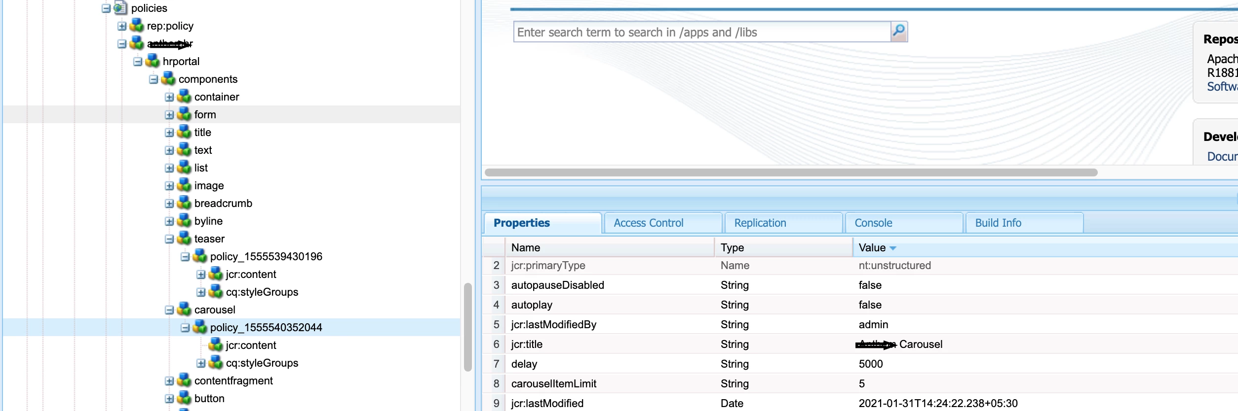 Now i have authored the aforementioned parameters by editing the component policy as shown below
