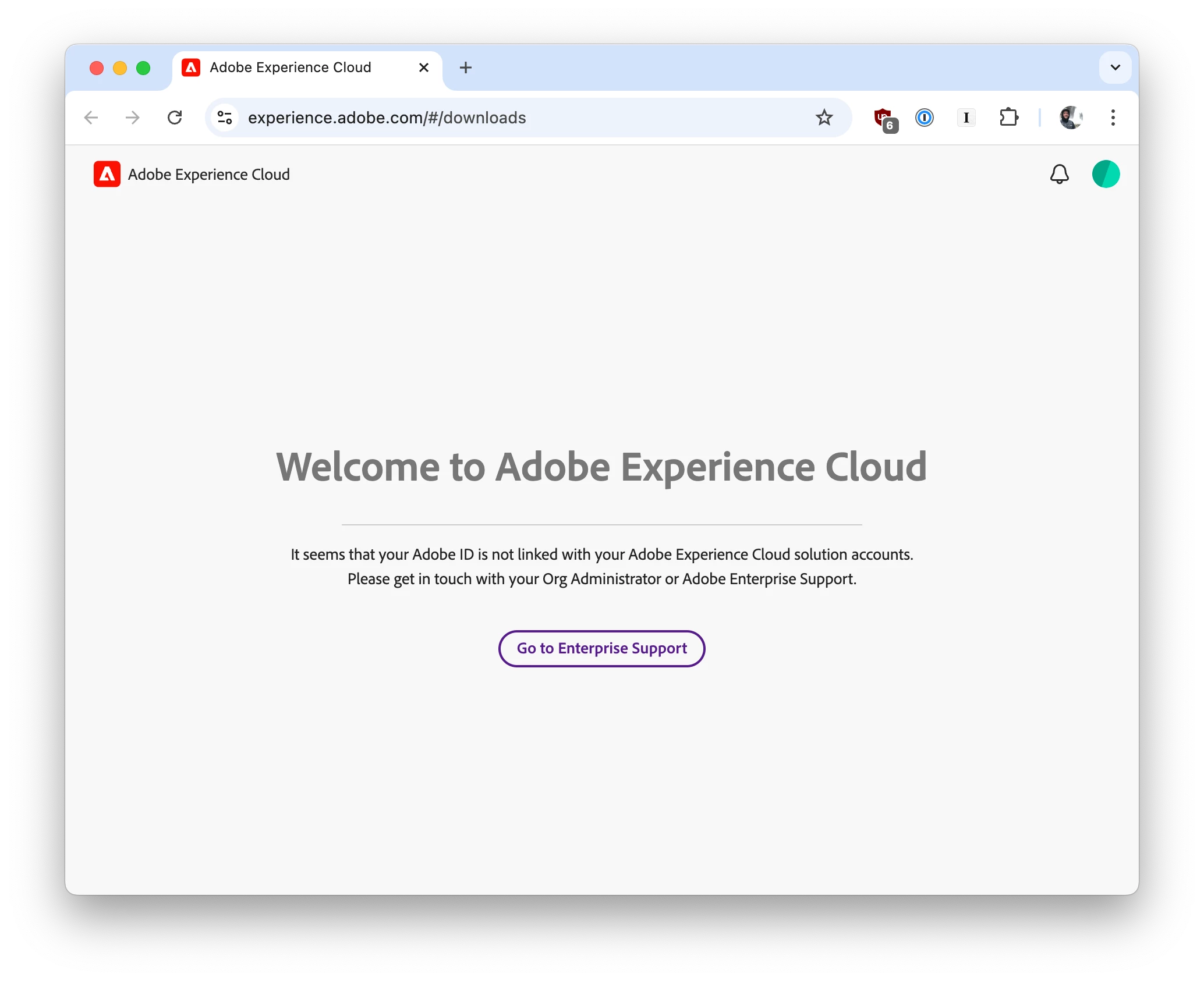 I think I did everything correctly, but I never received a confirmation email and when I go to https://experience.adobe.com/#/downloads I see the attached image.