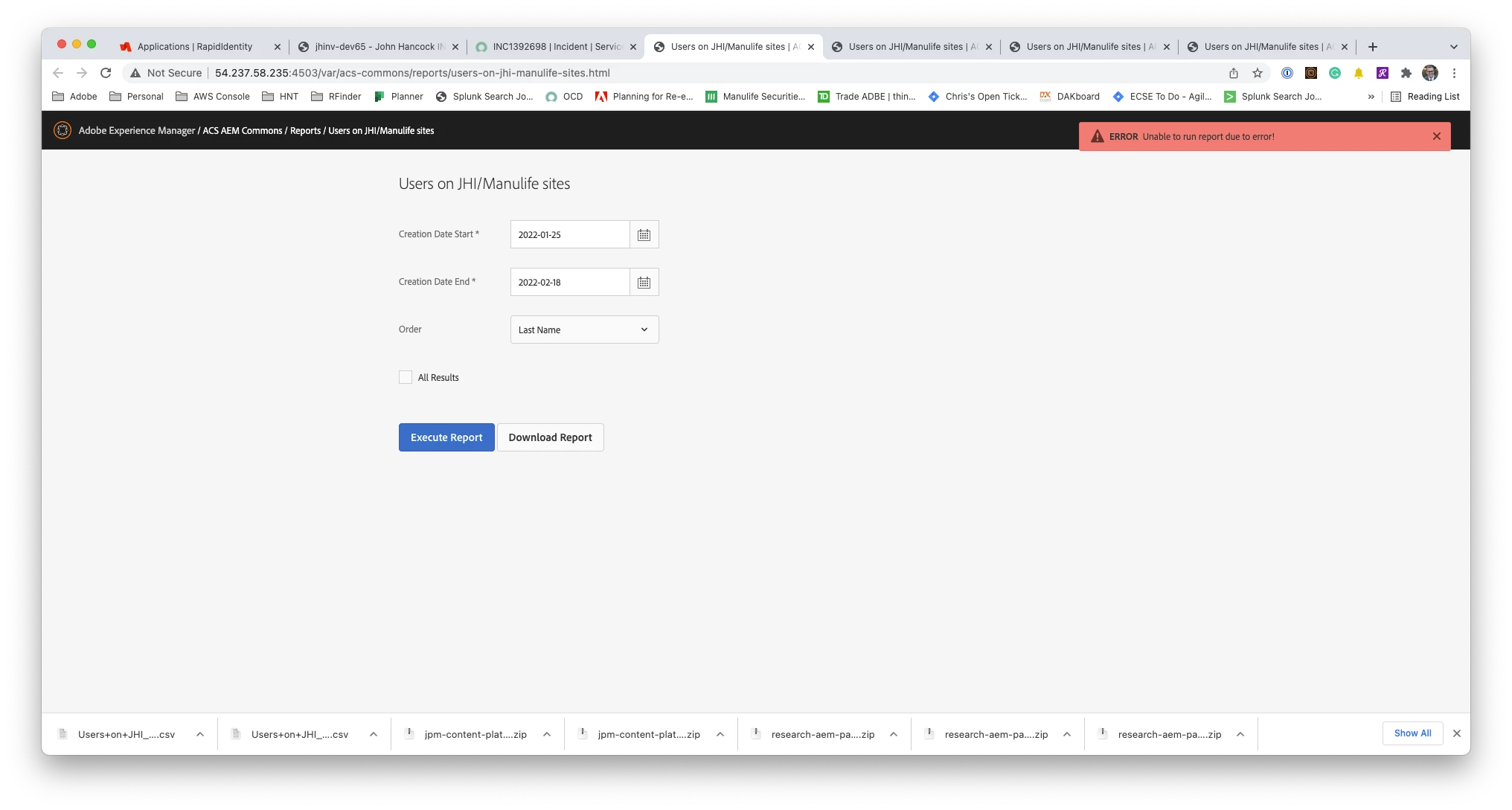 18.02.2022 12:26:29.772 ERROR [192.150.9.200 [1645205186151] GET /var/acs-commons/reports/users-on-jhi-manulife-sites/jcr:content.report.csv HTTP/1.1] org.apache.sling.engine.impl.SlingRequestProcessorImpl Writer has already been closed.