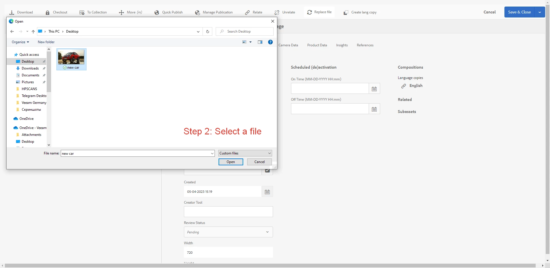1. Content manager can update an asset's file from the asset's properties by uploading the file from his/her local computer.