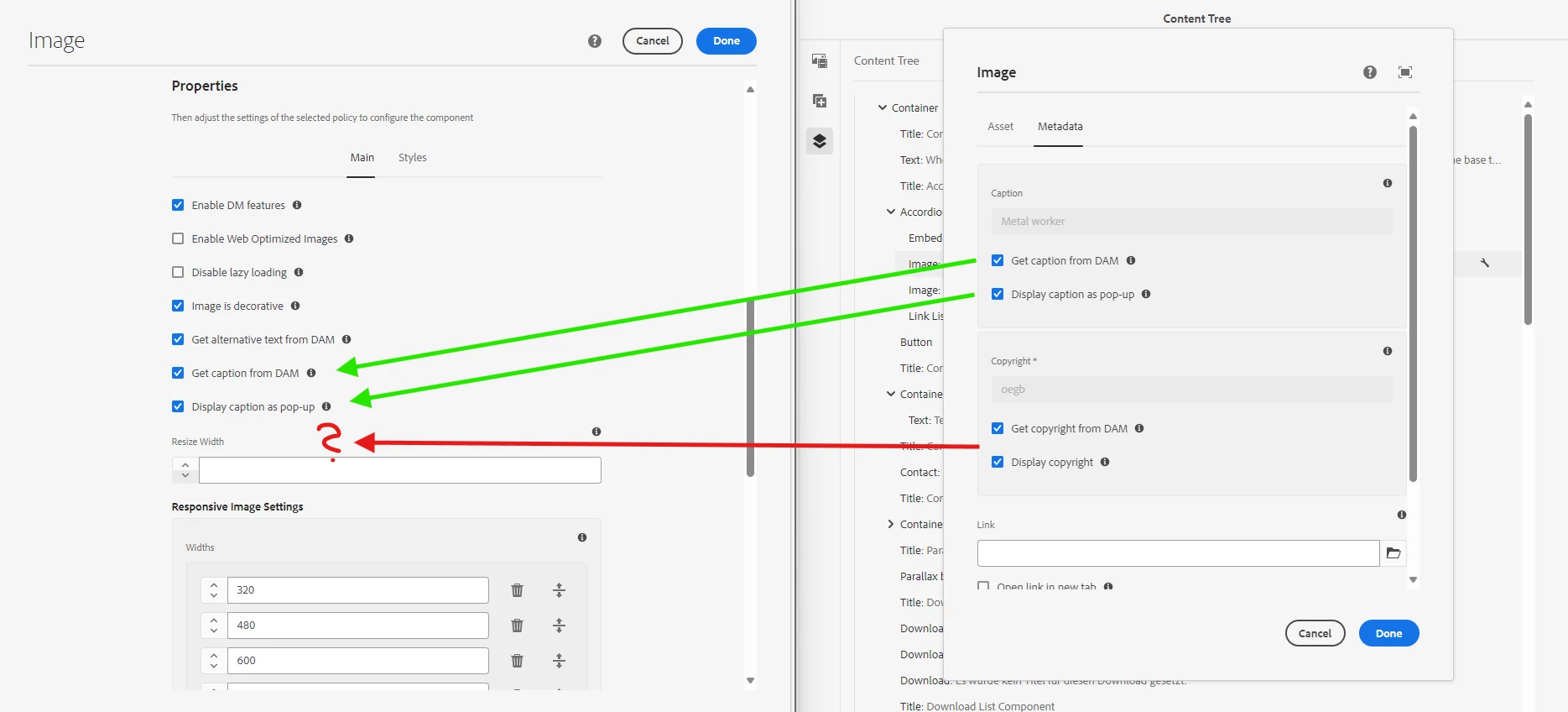 But that is only possible of the options "Get copyright from DAM" and "Display copyright" are added to the Image component policy and we as admin can enable them as default for our clients. |