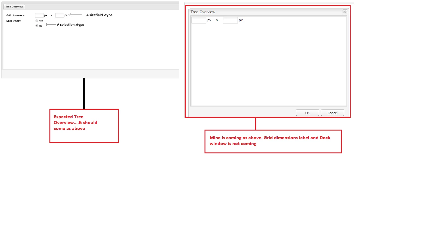But after creating aemgrid dialog in CRXDE, my grid dimensions label and dock window is not coming, as shown below.