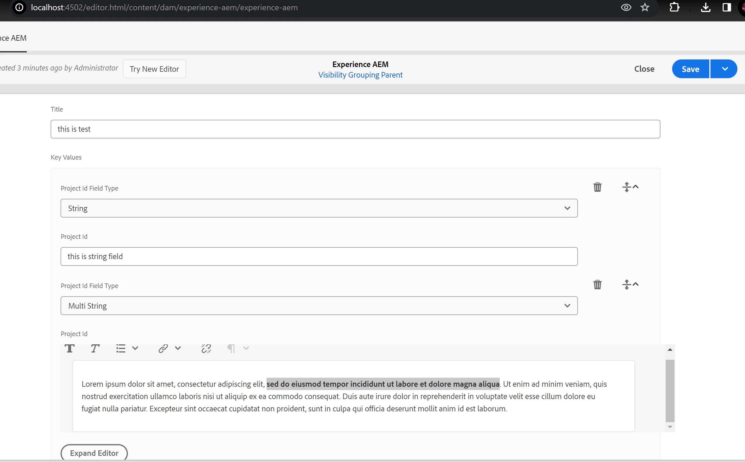 adding Composit mutilfield RTE on ContentFragment in AEMasCS