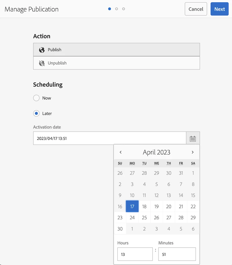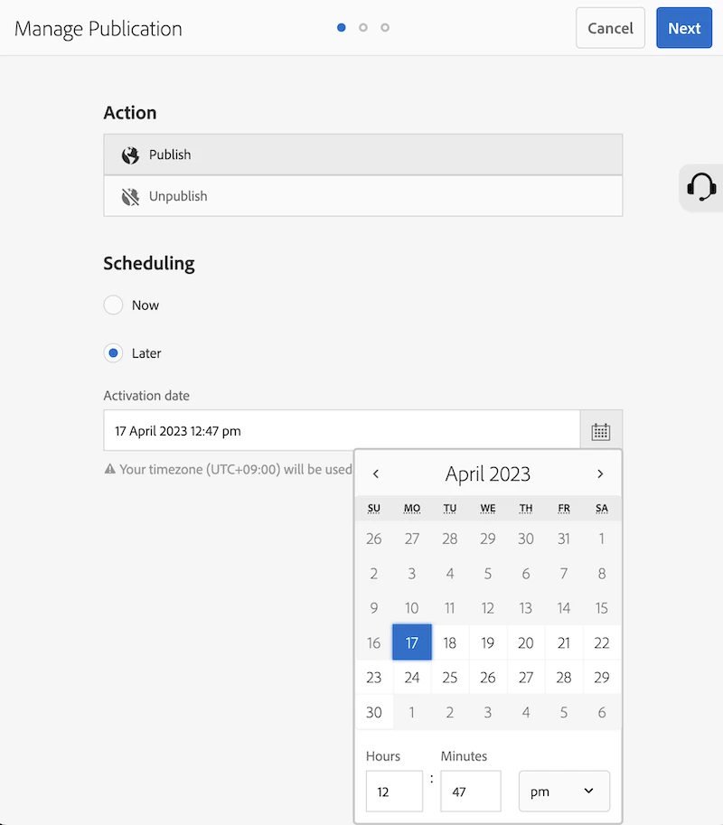 Adobe Experience Manager: 公開管理の予約日時フォーマットをカスタマイズする方法