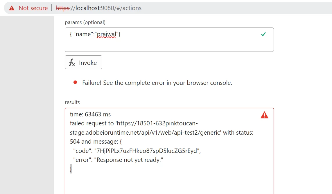 The project is getting deployed and I can see the UI is getting launched on the browser but still getting error while invoking the action. In this I even disabled the property in app.config.yaml file "require-adobe-auth: false" but still same error.