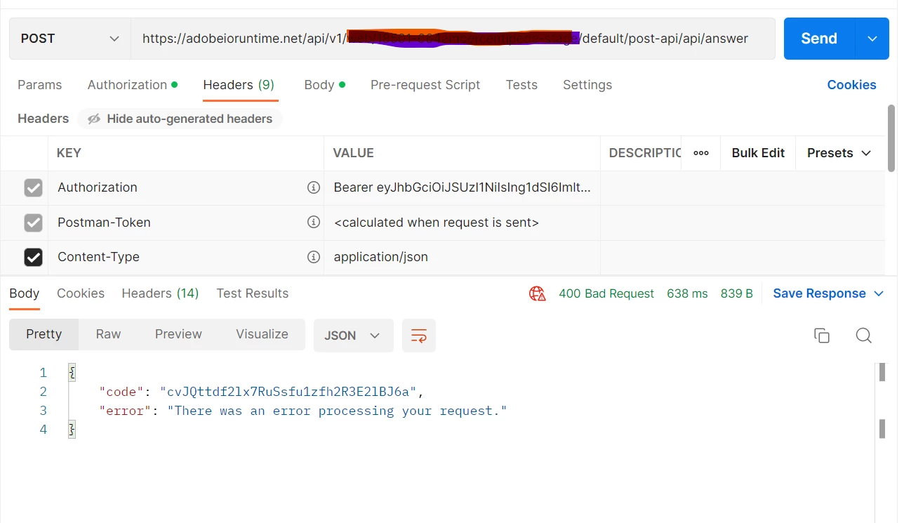 Could you please help me with the POST API call in Adobe IO Runtime.