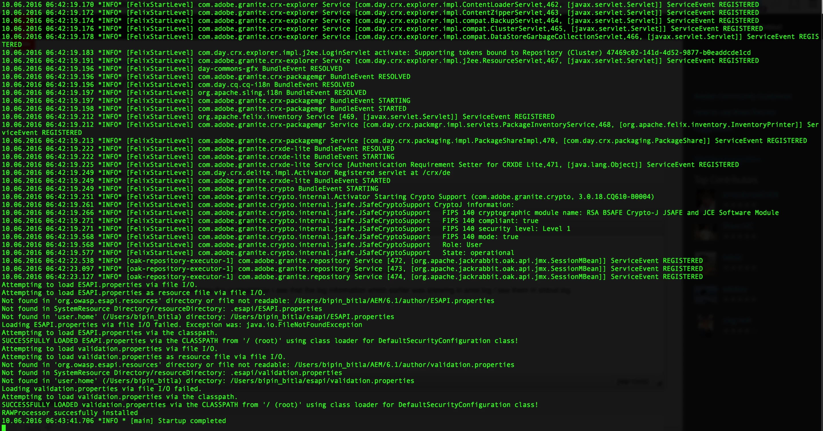 AEM 6.1 stdout.log with error.log information