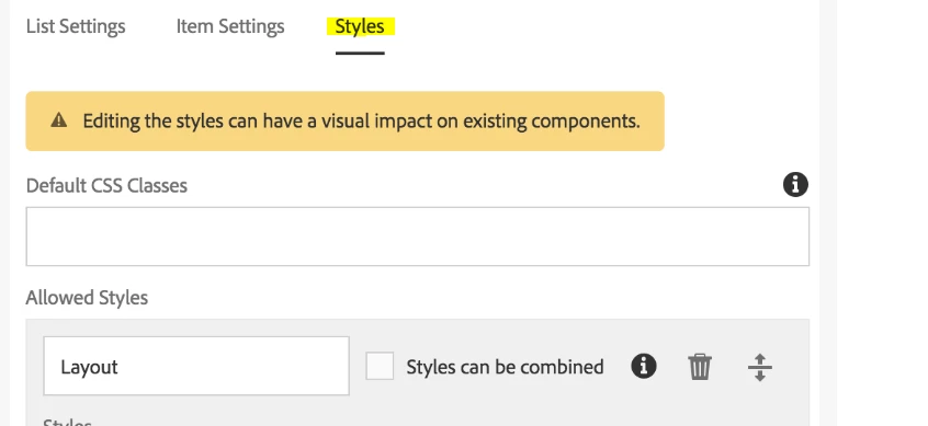 We have followed the link Style System for including style system. But when we click on the policy tab of the List component we are not able to view styles tab as mentioned in the blog.
