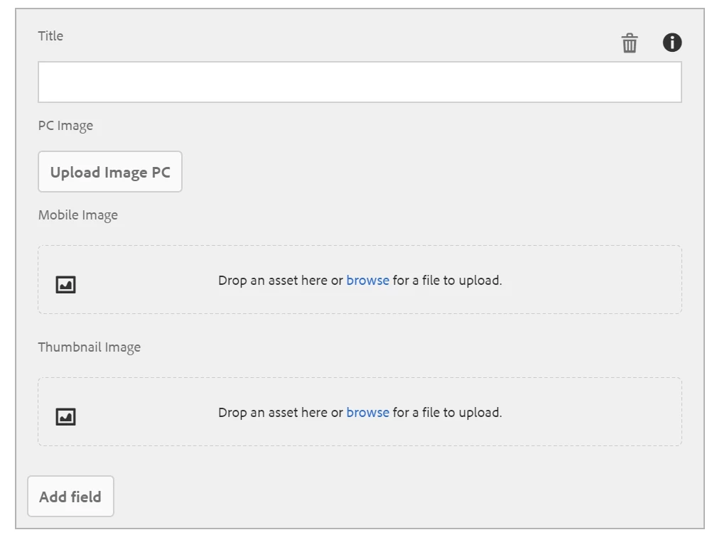 But, what I want to make is 3 images, and it didn't show up appearance unlike what I expected, which shows different look(upload image PC) and cannot include any picture.