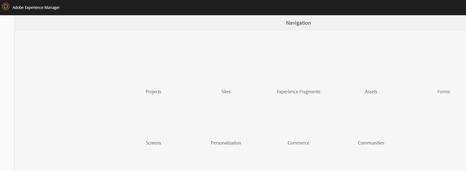 the very first time, we login into the server, all the image icons are appearing and once we click the AEM icon on the left top corner, it shows all the icons as below.