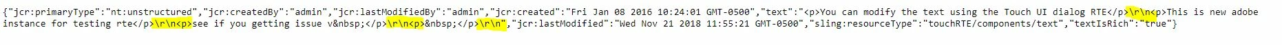 AEM 6.4 Richtext authored Content adding "\r\n" for new line character.