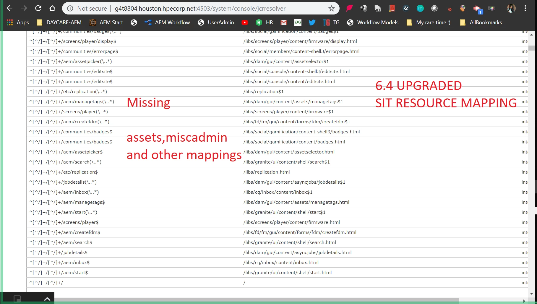 The upgraded instance is Up and Running but I am unable to access few consoles like assets.html miscadmin useradmin and few others.