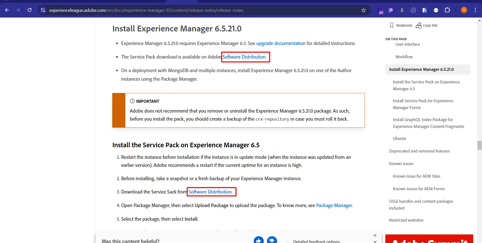 the links in the docs aren't available. Any other sources in the doc that provides the AEM 6.5.21 service pack?